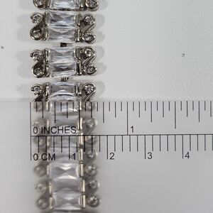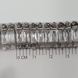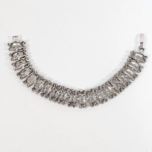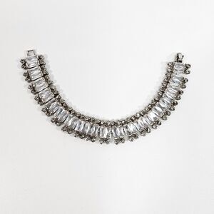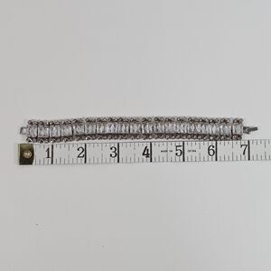 Vintage Clear Baguette Rhinestone Wide Link Bracelet 7 Inch