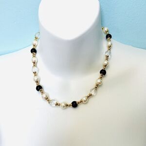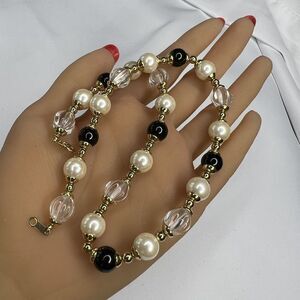 Vintage Clear Black Lucite Pearl Beaded Gold Tone Necklace Colkar Necklace 1013