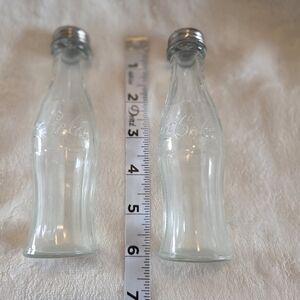 Vintage Clear Coca-Cola Bottle Salt & Pepper Shakers Metal Caps Collectible