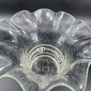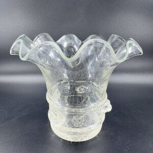 Vintage Clear Crackle Glads Ruffled Top Glass Vase Vessel Hand Blown Vase VTG