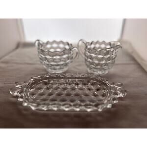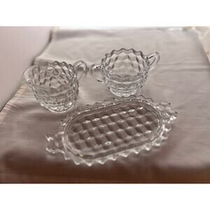Vintage Clear Creamer and Sugar Set with Tray