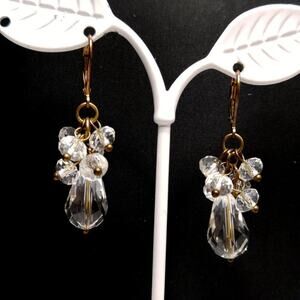 This is a beautiful pair of vintage clear crystal cluster drop earrings with lever-back clasp. Length - 1 3/4 Inches. Pre-loved. Great condition.