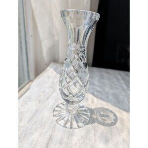 Vintage Clear Crystal Cut Glass Bud Vase 7" Tall Elegant Diamond Pattern