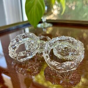 Vintage Clear Crystal Daisy & Button Design Napkin Rings Set of 4