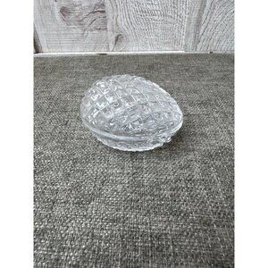 Vintage Clear Crystal Glass Oval Egg Shape Trinket Box w/ Lid 3 inch
