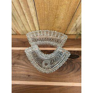 Vintage Clear Cut Glass Fan-Shaped Candle Holder Dish Set