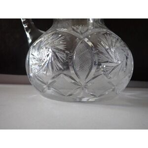 Add a touch of vintage elegance to your home with this beautiful cut glass hobstar crosshatch pitcher. The intricate crosshatch design and sparkling cut glass make it a perfect addition to any collection or table setting