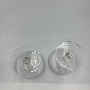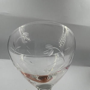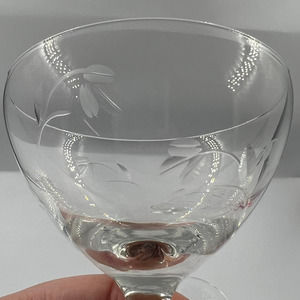 Vintage Clear Etched Champagne Wine Glasses Floral Flower Set 2 MCM Midcentury