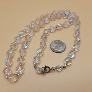 *Description: This is a beautiful set of Czech clear crystal, fire polished, vintage beaded necklace measuring approximately 19 inches. The beads sparkle with a variety of colors which is the fire polished finish. This would be a great addition to your jewelry collection or make a great gift!