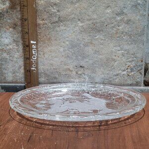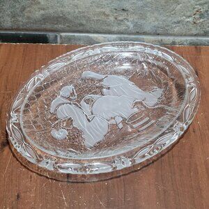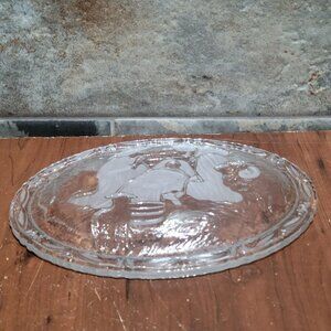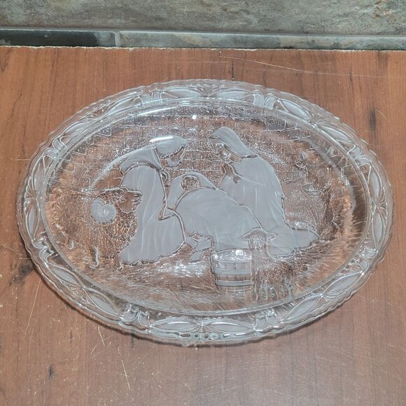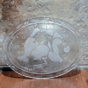 Vintage Clear Frosted Serving Dish Plaque Glass Oval Nativity Scene