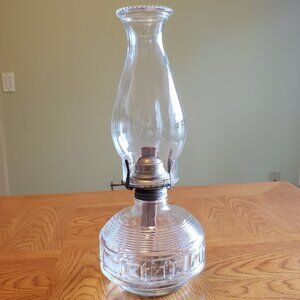 Vintage Clear Glass 14" Oil Lamp with Glass Chimney