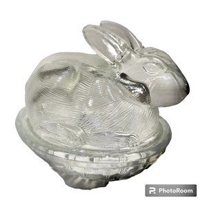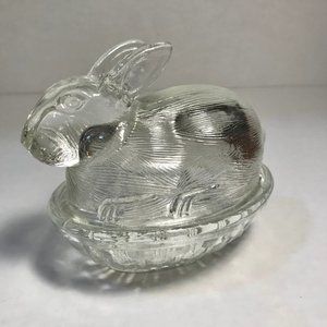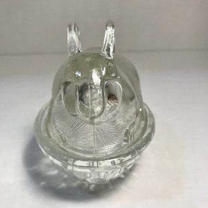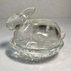 Vintage Clear Glass Bunny Rabbit Trinket Box Candy Dish Easter Basket Gift Ring