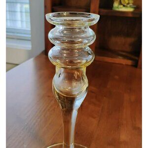 Vintage Clear Glass Candlestick Holder 9-Inch Elegant Design Rounded Accents