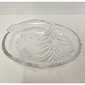 Vintage Clear Glass Christmas Tree Dish Stars Moon Holiday Serving Bowl