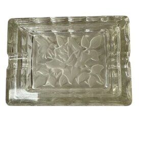 Vintage Clear Glass Cigarette Box and Ashtray With Floral And Starburst Patterns