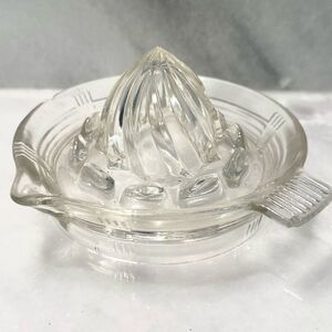 This vintage glass citrus juicer is a practical and stylish kitchen tool. Its clear glass design allows you to easily monitor the juicing process, while its sturdy construction ensures long-lasting durability.