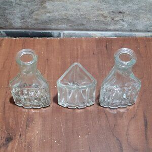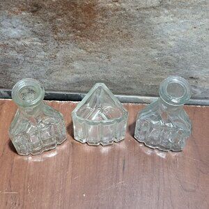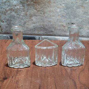 Vintage Clear Glass Collectible Bottles 3 Sided Set of 3