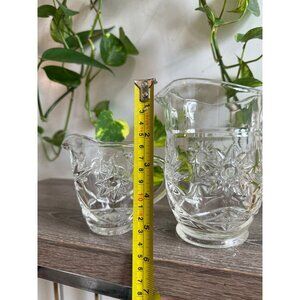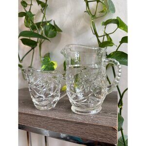 Vintage Clear Glass Creamer and Sugar Set with Starburst Pattern