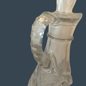 vintage glass cruet, clear glass bottle, starburst pattern, floral pattern, glass stopper, elegant glassware, vintage kitchen, decorative bottle, collectible glass, antique cruet, glass handle, vintage decor, clear bottle