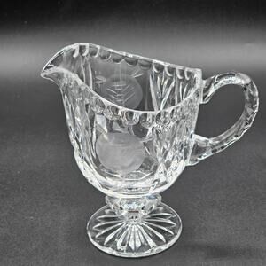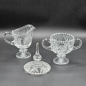 Vintage Clear Glass Crystal Footed Creamer & Sugar Set Etched Rose Pedestal