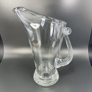 Vintage Clear Glass Crystal Pitcher Jug With Swirl Handle Made In Poland Glass