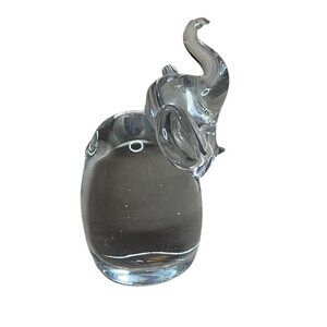 Vintage Clear Glass Elephant Paperweight Figurine Trunk Up