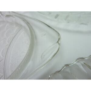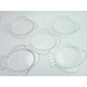 Vintage clear glass fish shaped snack trays set of 5. Small little dishes with off set rim compartment. Overall size is roughly 7" x 6". Cute for everyday use or tropical beach themed parties. Will be packed with care.