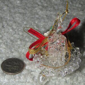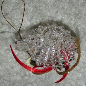 Vintage Clear Glass Holiday Christmas Candle Ornament w/Handle Red Roses Ribbon