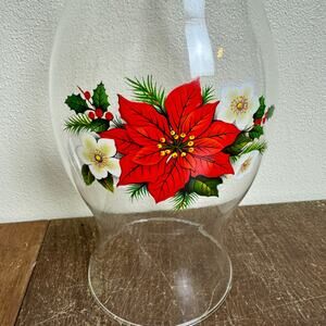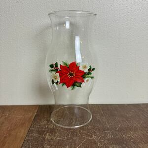 Vintage Clear Glass Hurricane Candle Cover Holiday Poinsettia Christmas Decor