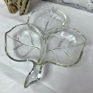 Vintage Clear Glass Leaf Shaped Divided Relish Dish
