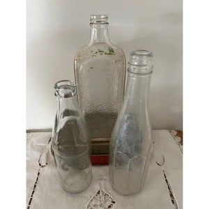 Set of 3 Vintage Clear Glass Decanter Liquor Soda Pop Bottles.