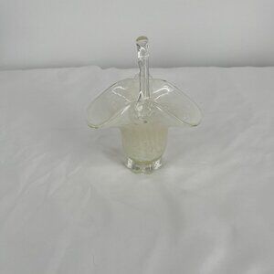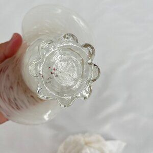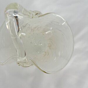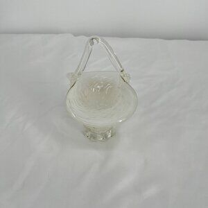 Vintage Clear Glass White Confetti Hand Blown Basket with Handle