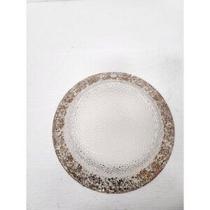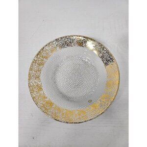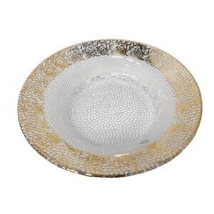 Vintage Clear Gold Trim Textured Glass Serving Bowl Made In Turkey Round 9"