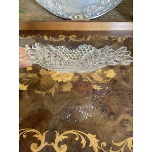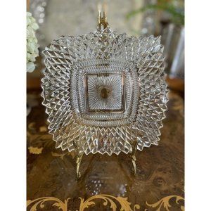Clear INDIANA GLASS Co Square Ruffled Diamond Point Candy Nut Dish Bowl Vintage.