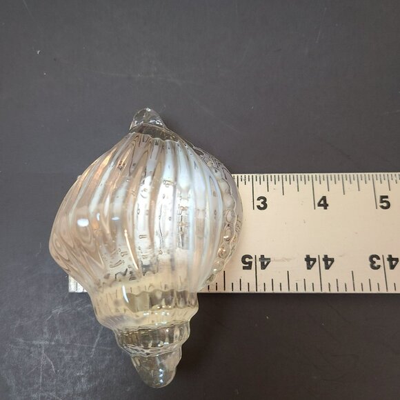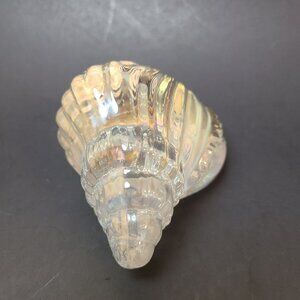 Vintage Clear Iridescent Glass Tulip Seashell Paperweight Bubbles