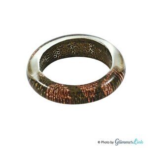 Vintage Clear Lucite Bangle Reversed Painted Carved Snake Skin