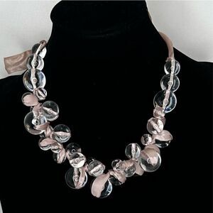 Vintage Clear Lucite Bubble Necklace 18" Pink Ribbon Tie Closure Statement