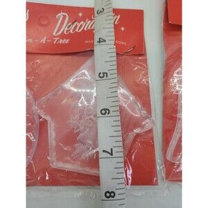 Vintage Clear Plastic Christmas Tree Decoration Santa Bells Holly NIP Hong Kong