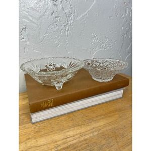 Vintage Clear Pressed Glass Starburst Pattern 3-Footed round Candy Dish 7”