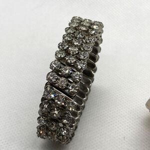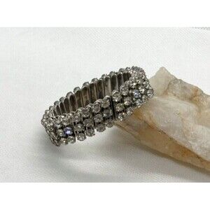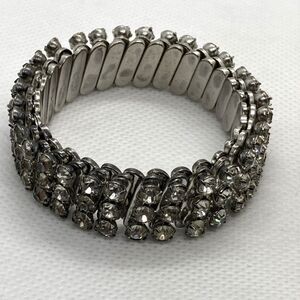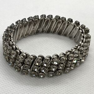 Vintage Clear Rhinestone Accordian Stretch Silver Tone Bracelet 50s 60s Sparkly
