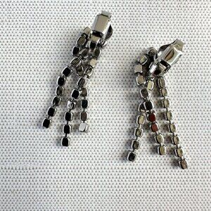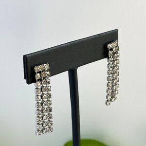 Vintage Clear Rhinestone Clip-On Dangle Earrings 1.5" Drop For Women