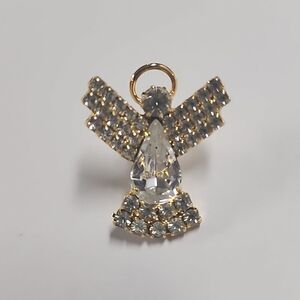 Vintage Clear Rhinestone Guardian Angel Gold Tone Lapel Pin
