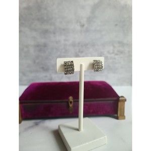 These are a vintage pair of clear rhinestone screwback earrings set in a silver tone metal.