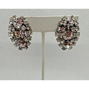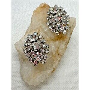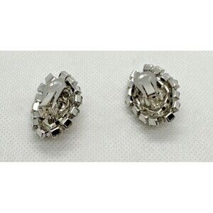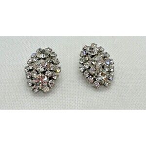 Vintage Clear Rhinestone Silver Tone Clip-On Earrings 60s 70s Retro Sparkly Glam