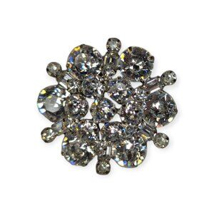 Vintage Clear Rhinestone & Silver Tone Large Brooch/Pin