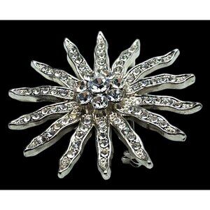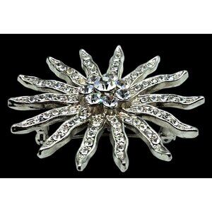 Vintage Clear Rhinestone Starburst Brooch Pin Silver Tone Costume Jewelry