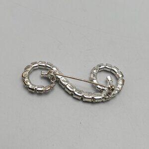 Vintage Clear Rhinestone Swirl Silver Tone Brooch Pin