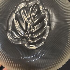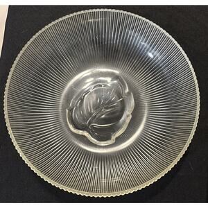 Vintage Clear Ribbed‎ Depression Glass Serving Bowl Etched Center Leaf Design