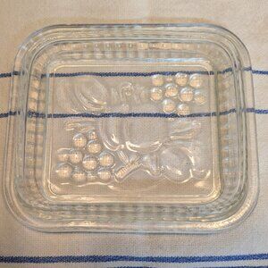 Vintage Clear Ribbed Glass Refrigerator Dish With Fruit Lid Only