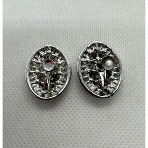 Vintage Clear Round Rhinestone Silver Tone Oval Shape Screw Back Earrings Retro